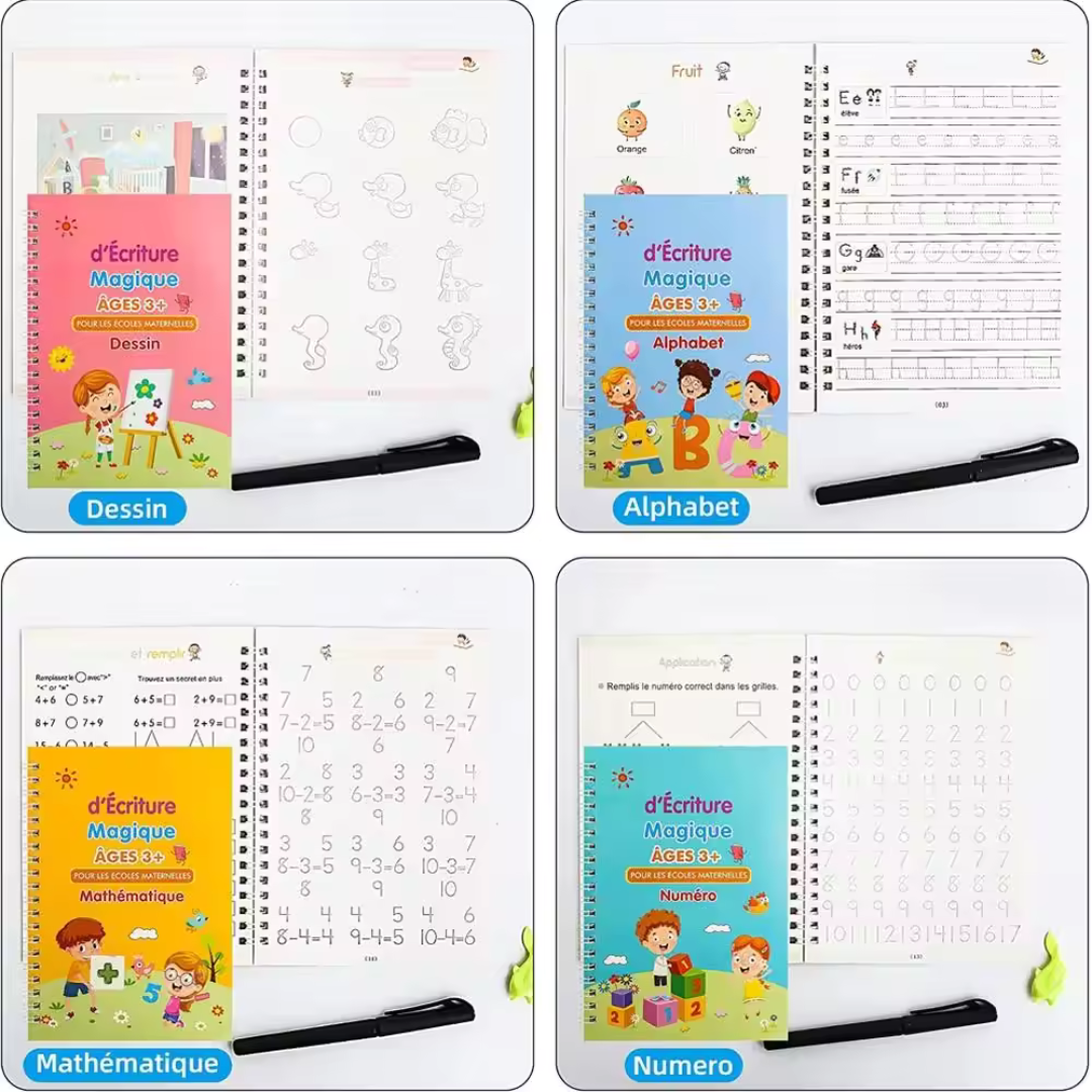 04 Cahiers d'Écriture Magique Pour Enfants + Tableau Magique Lumineux En Bonus